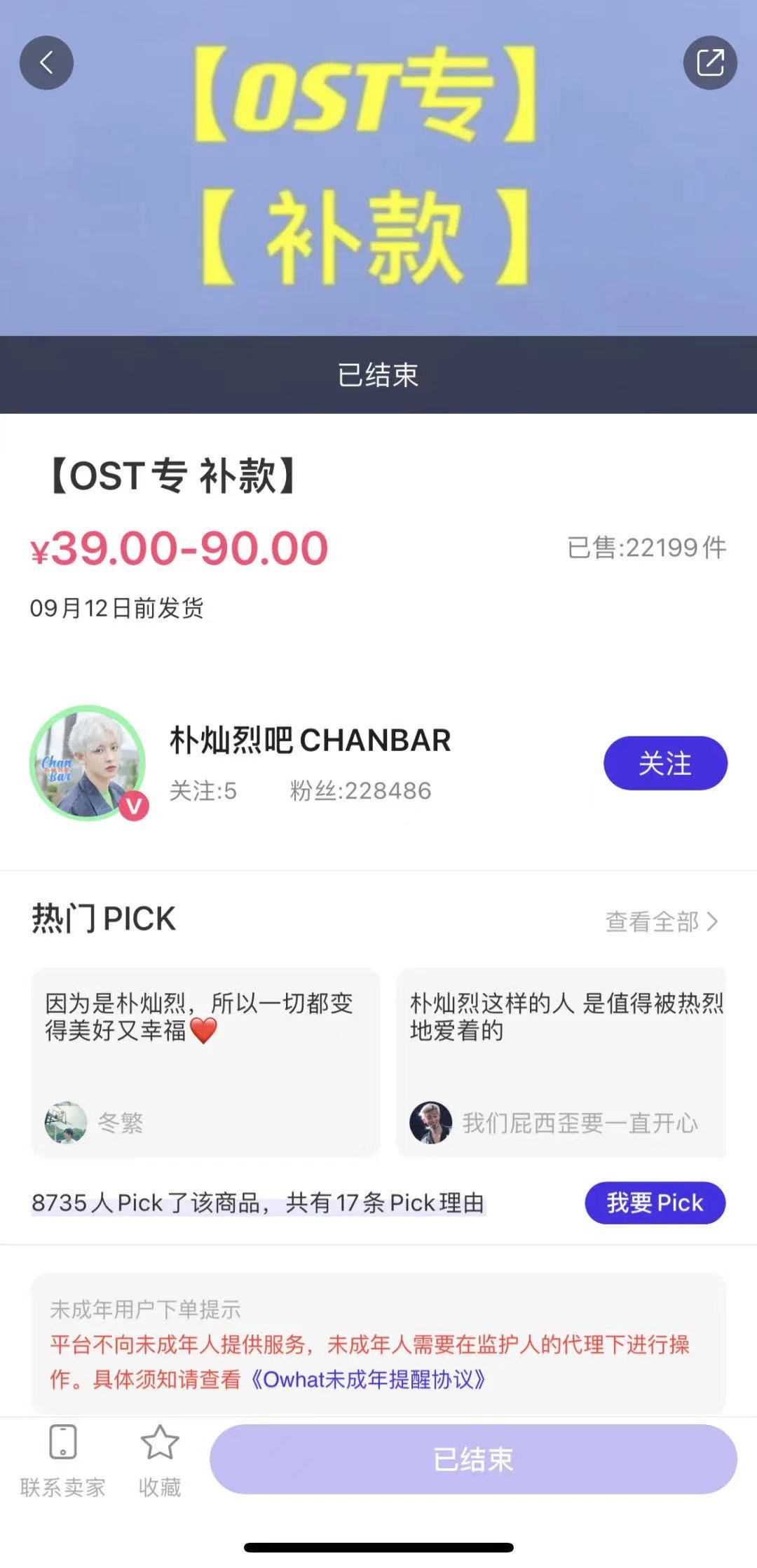 在粉丝交易平台o!what上,记者看到“朴灿烈吧CHANBAR”的店铺有数百件商品,销量最高的超过150万件。在最新的商品中,“OST专 补款”销量较高,超过2万件,某杂志五月刊销量也达1.74万件,“补邮 抽抽乐”销量超过3.6万件。由此预估,在此事件中,涉及粉丝数量要达到数万人。而根据粉丝反映的情况,其中有不少还是未成年人。