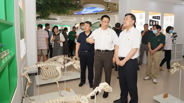 姜沛民、张东军参观了标本馆各大展区,听取了各展区情况介绍,体验了中兽医脉象模型,观看了VR展区全息成像技术,对动物医学标本馆的建成表示高度肯定。