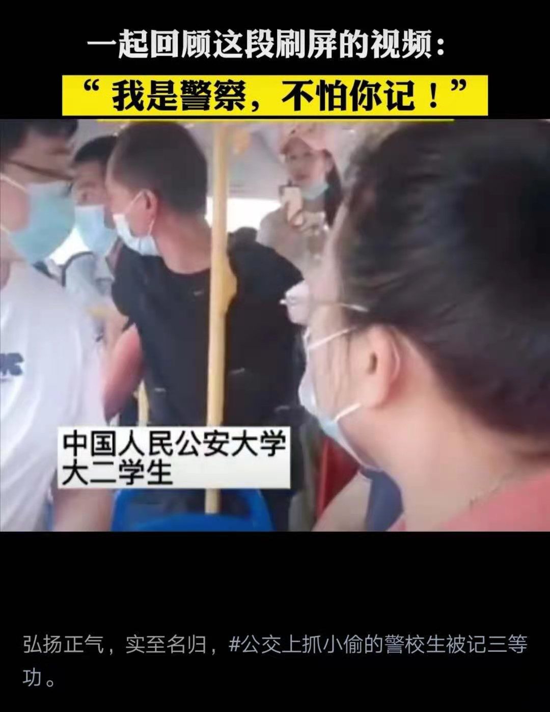 7月5日,湖北黄冈公交车上一小偷作案后欲逃跑,被中国人民公安大学学生程昕抓住。面对小偷威胁说:“我记住你了,老子要报复你”,程昕怒斥“我是警察,不怕你记!”7月6日,中国人民公安大学通过微博回应:这就是新时代共和国预备警官。