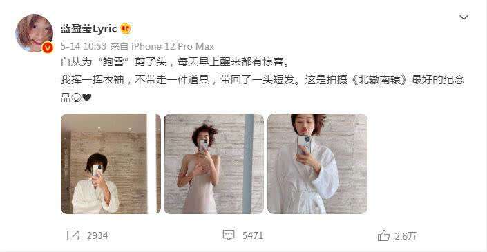 “自从为‘鲍雪’剪了头,每天早上醒来都有惊喜。我挥一挥衣袖,不带走一件道具,带回了一头短发。这是拍摄《北辙南辕》最好的纪念品。”
