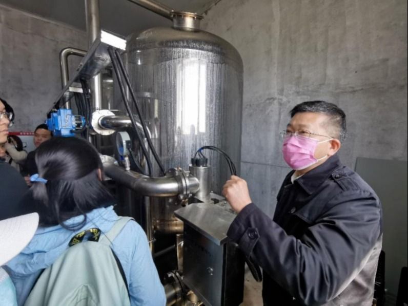 在同乐村饮用水处理间,碧水项目施工现场负责人王斌远教授为同学们详细介绍了同乐村的供水现状、水处理工艺流程等。