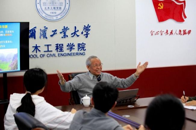 沈世钊院士给学生讲授思政实践课(张钧瑞 摄)