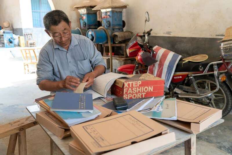 ↑6月9日,沈怀德在家中整理自己的账本。新华社记者 熊琦 摄