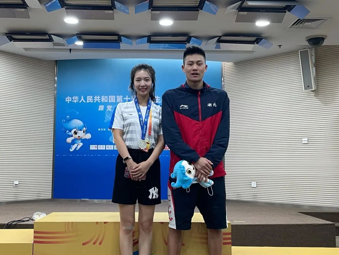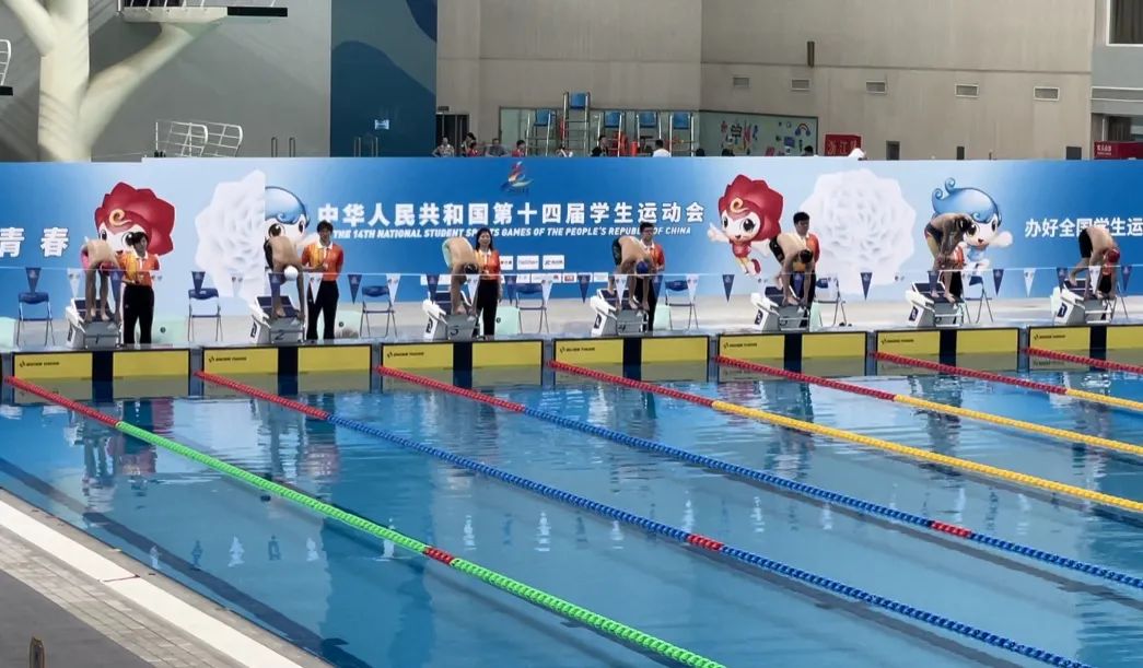 2019级运动训练本科生张睿轩(右)勇夺大学生男子乙组100米蛙泳及200米蛙泳亚军