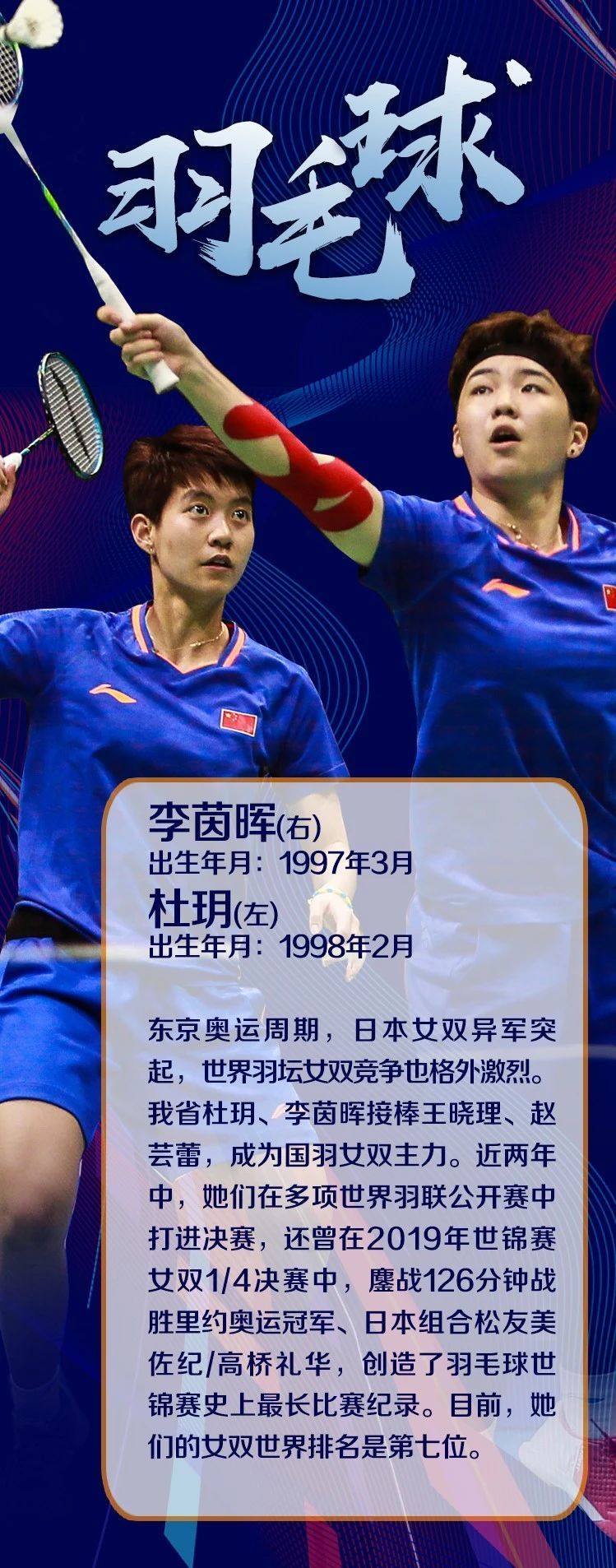 在本届东京奥运会中李茵晖将和搭档杜玥参加羽毛球女双项目比赛。