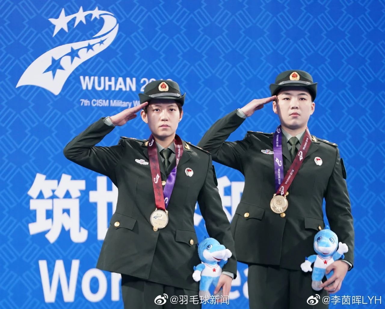 在第七届世界军人运动会羽毛球女双决赛中,李茵晖与搭档杜玥获得冠军。