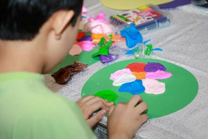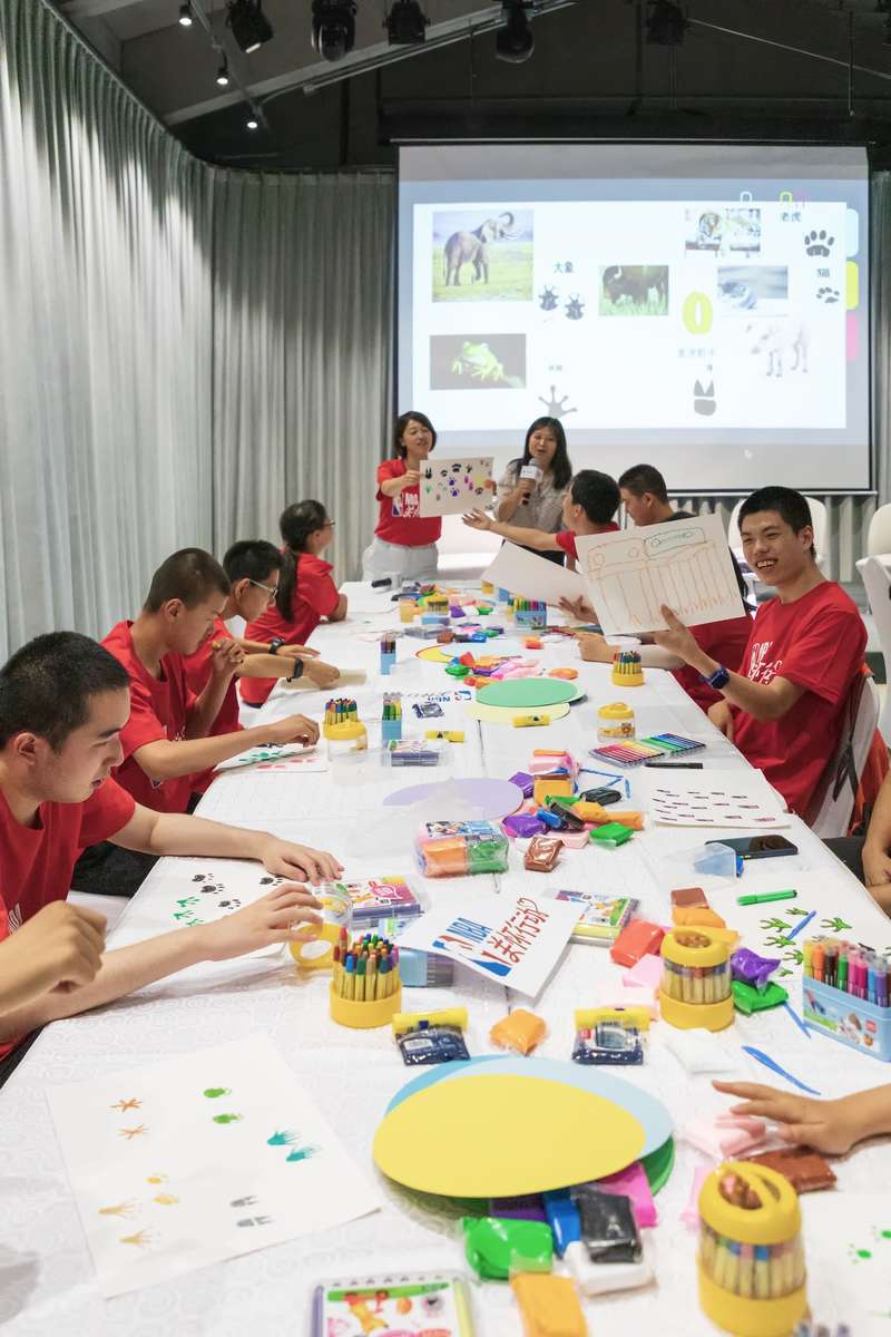 活动现场,国家二级心理咨询师王晓梅和北师大心理学硕士小米助教带队,与来自特殊学校的孩子们温情互动。王晓梅给孩子们讲述了《七色花》的故事,又引导孩子们自由畅想七色花,使用粘土、画笔、撕纸等材料创作七色花。