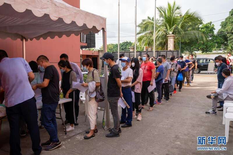7月19日,中国公民在科特迪瓦阿比让的“春苗行动”接种点排队登记接种新冠疫苗。新华社记者 郑扬子 摄