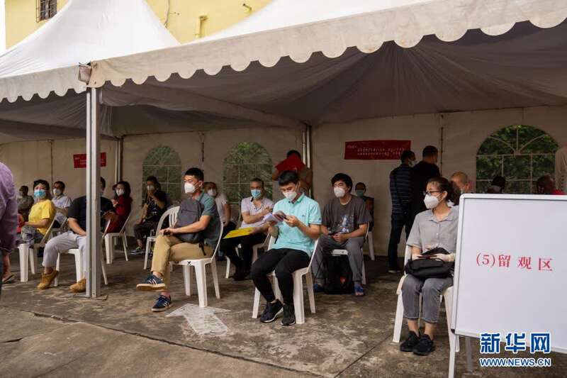 7月19日,中国公民在科特迪瓦阿比让的“春苗行动”接种点接种新冠疫苗后留观。新华社记者 郑扬子 摄
