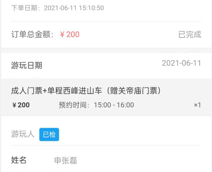 申先生查询儿子手机支付记录还发现,当天15时10分,申张磊花200元购买了华山“成人门票+单程西峰进山车”,2分钟后,又向一名称中带“商户”字样的个人账户支付140元。其经与华山景区确认,这140元是西峰索道费用。