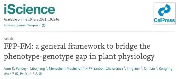 近年来,高通量表型计量技术,包括生理表型技术日益成熟,已能够长期、实时监测植物响应环境动态变化的综合生理性状。该技术与下一代基因组技术一起将植物科学带入了大数据时代。然而,目前仍缺乏能够偶联解析动态生理性状与DNA序列变异间关系的通用算法框架,这已成为表型组时代的重大技术瓶颈之一。徐沛课题组的上述阶段性研究成果为解决这一问题开辟了新路。