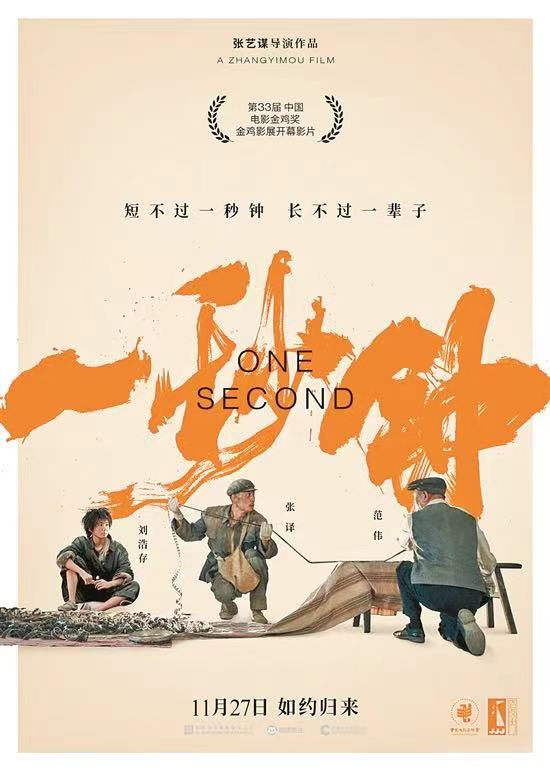 一秒虽短,光影情长。《一秒钟》的故事灵感来源于张艺谋曾经的真实经历,讲述了张九声(张译饰)与刘闺女(刘浩存饰)因一场电影结下不解之缘的故事。剧情主线围绕一场“放映事故”:由于技术原因,电影无法如常放映,放映员范电影(范伟饰)动员所有人齐力抢救胶片,而在抢救胶片的过程中,张九声和刘闺女的冲突也由此展开……