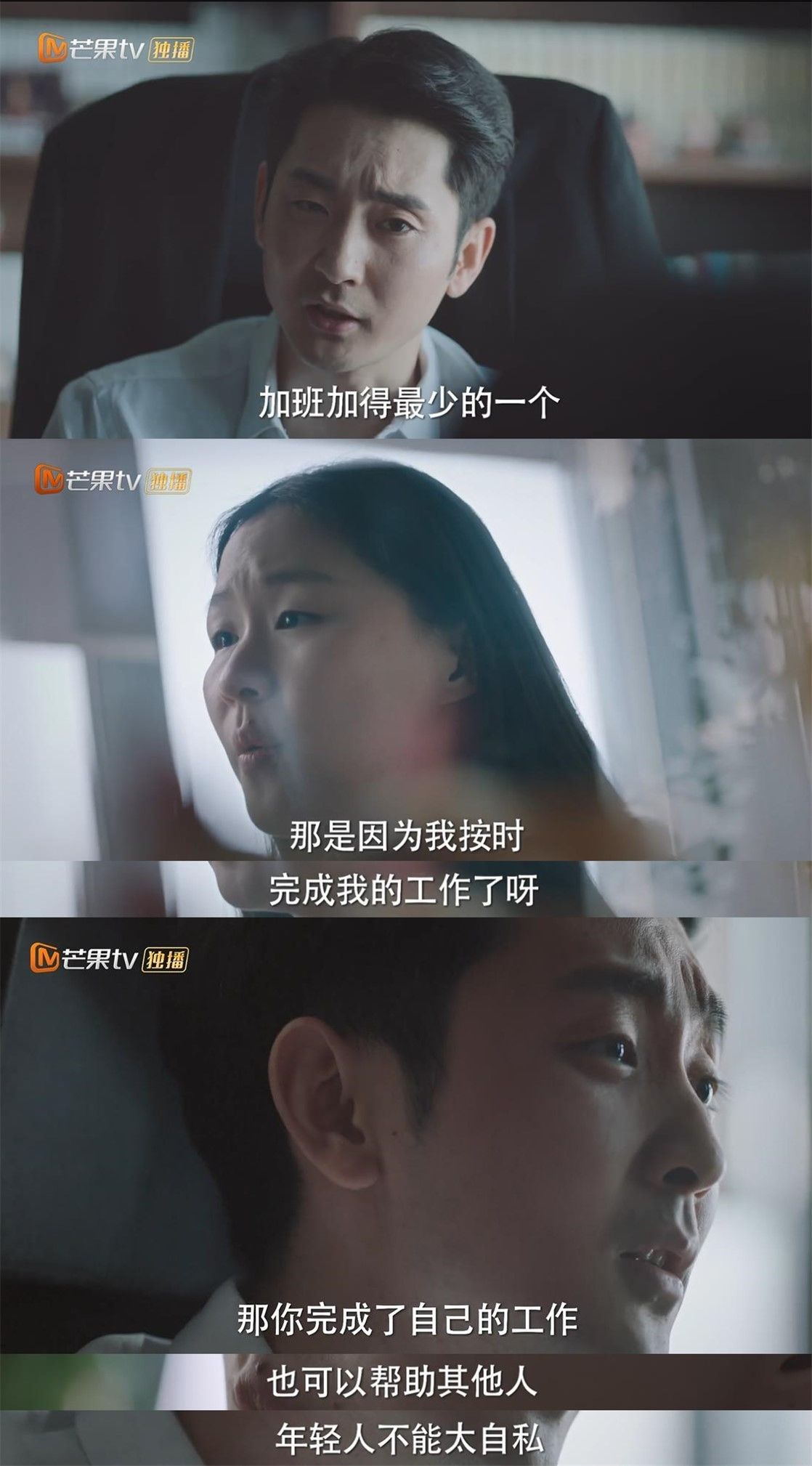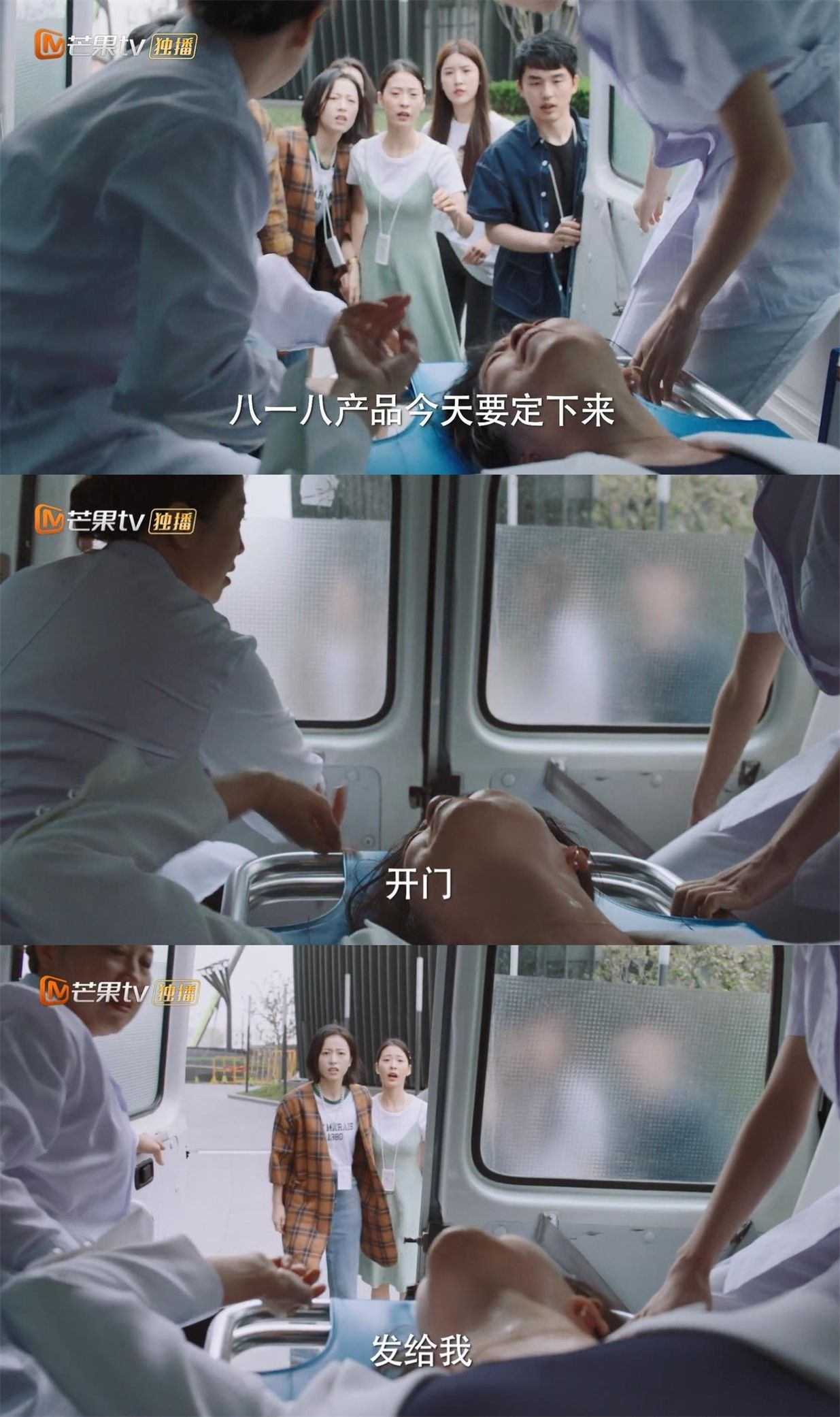 员工们都特别慌,但总监冷静地通知丈夫带上东西去医院。上了救护车,同事说陪着去,总监说她生孩子大家帮不上,其实她担心的还是工作,要求员工今天必须把方案定下来,让救护车开门,补了一句“发给我”。