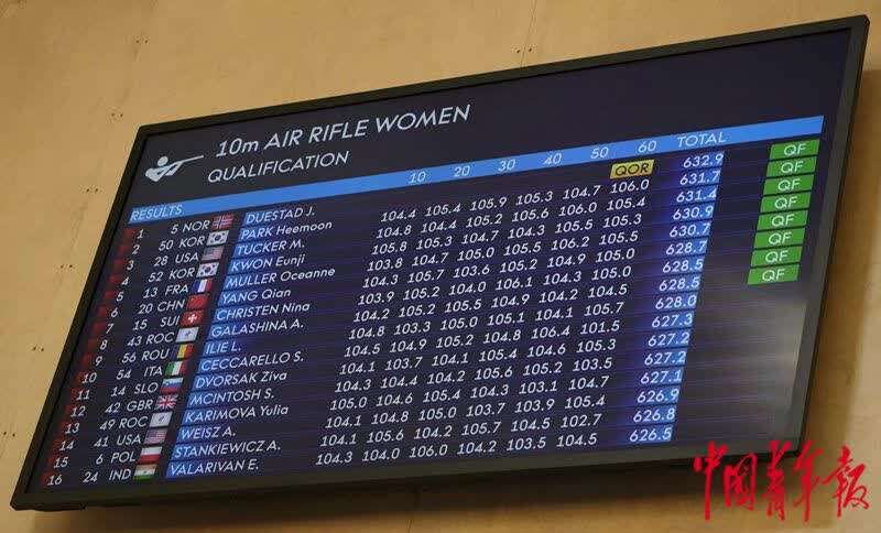 杨倩关注自己的成绩 中青报·中青网特派记者刘占坤摄