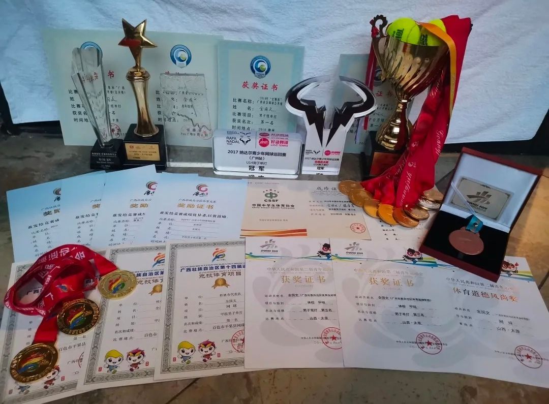 曾获广西壮族自治区第十四届运动会网球比赛3枚金牌