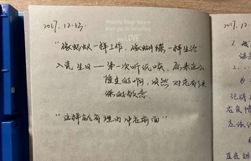 不同于盲目逐利,邓宏燕的驱动力往往来自内心的指引,她对这个世界的神秘一直保持着自己的好奇。正如她日记中一笔一划写下的“像蚂蚁一样工作,像蝴蝶一样生活”。在她看来,自己享受探索未知过程中得到的东西,即使没有结果,也算有所收获。