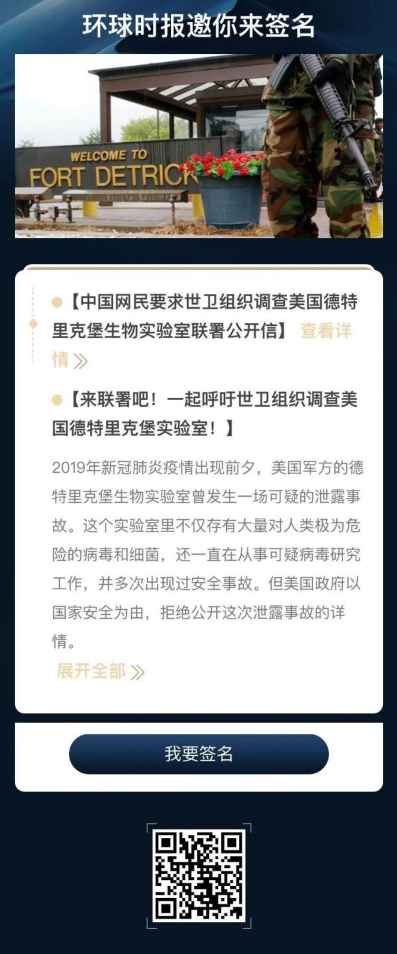 因此,在世卫组织总干事谭德塞于7月16日表示不能草率排除病毒来自实验室的可能性后,这些中国网民决定再次发出一封公开信,要求提出这一说法的世界卫生组织,必须调查美国这个疑点重重的德特里克堡实验室。