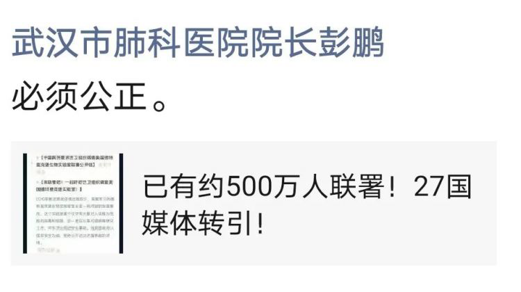 而且,据耿直哥了解,曾在去年武汉抗击疫情的战役中做出突出贡献的一线医护人员,也纷纷加入了这一中国网民的联署活动。