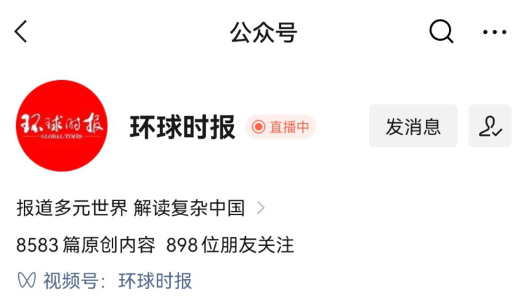 在微信里搜索公众号“环球时报”,并进行关注