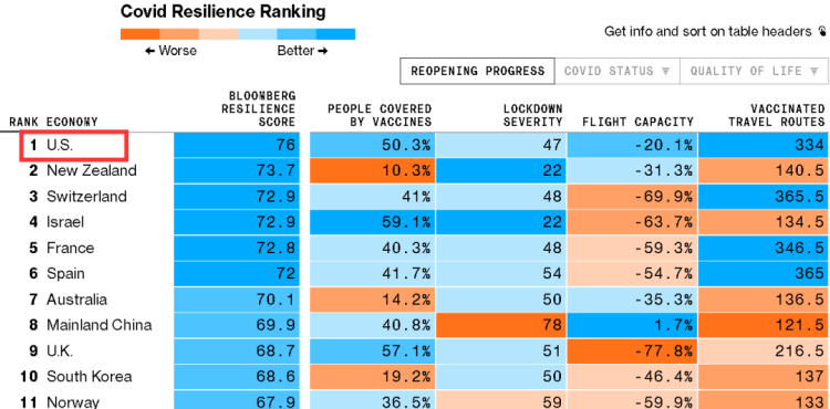 另一方面,一些美国媒体竟然编造出了一个荒诞的排行榜,将枉死了60万人的美国,说成了是什么抗击疫情“最坚毅”的国家。