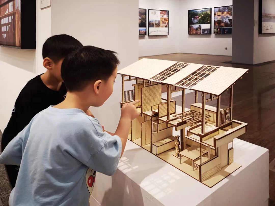 展览涵盖了近十年来相关学院在三湘大地上的规划、景观、建筑创作作品,还包含村落保护和建筑修复部分成果。卢健松团队的不少成果都呈现在了大众面前,包括李早云家厨卫改造的模型、白水洞村赫曦小学的改扩建工程。