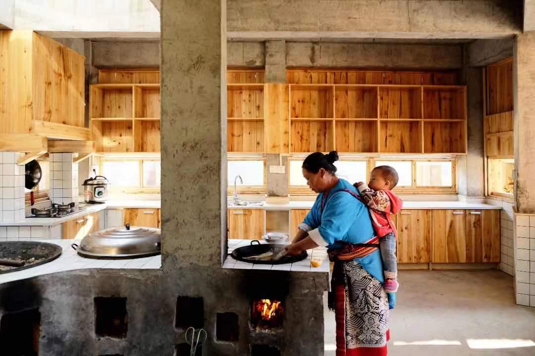 正如村民家中的厨房,利用烟囱设计打造出的不影响屋内环境的腊肉熏制空间,正如赫曦小学中的教师研讨空间里,通过错落的空间设计打造出“建筑就是家具”的实用场所……他们的建筑作品总是带着设计者的温情考量,在巧妙构思中给人以呵护。