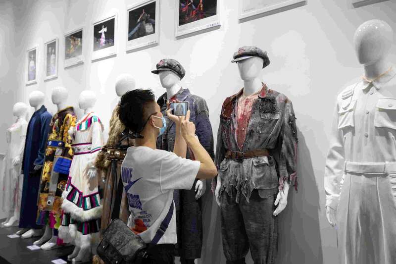 参观者拍摄展出服装细节