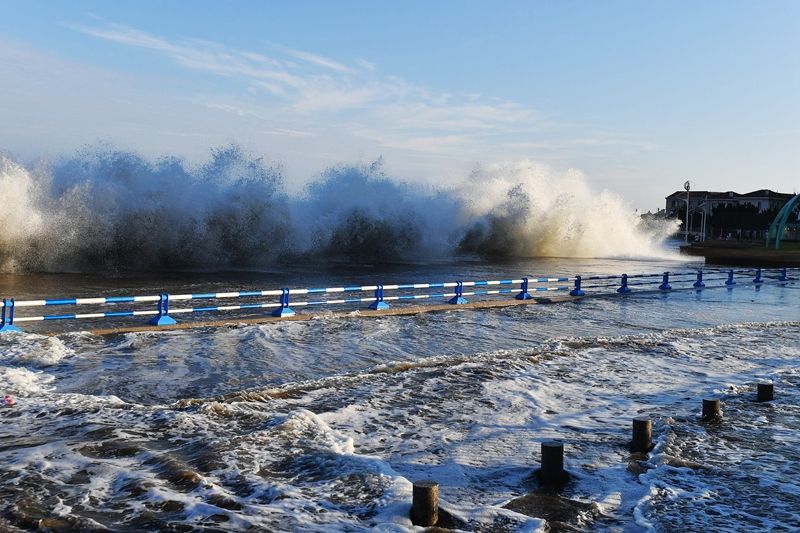 台风“烟花”逐渐影响山东青岛 沿海一带出现十余米高巨浪