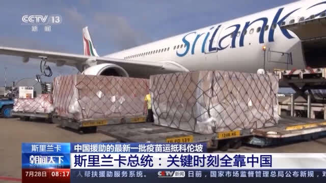 中国援助的最新一批疫苗运抵科伦坡 斯里兰卡总统:关键时刻全靠中国