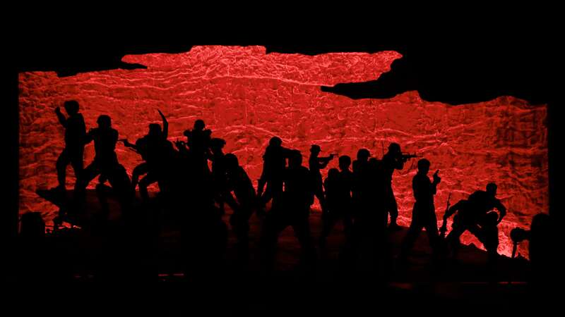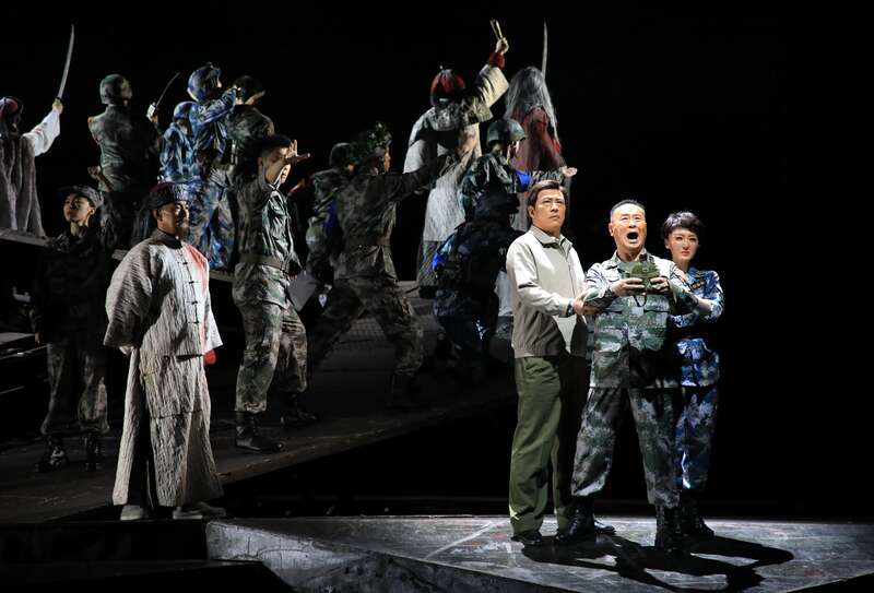 全剧以震撼的军事演习开场,在铁质转台和鲜红灯光的映衬下,导演宫晓东和本轮复排导演嵇瑞星为观众描绘出了一条军队训练务实唯战的铁血之路。宫晓东说:“这出戏写了一批‘傻子’,拿命殉自己的事业,拿前程殉自己的追求,但他们没有选择附和妥协认怂,这就是中国军人的脊梁。”