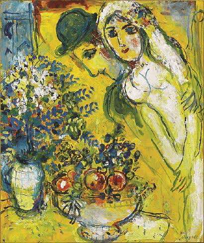 ▲夏加尔《黄色背景上的恋人》,将亮相久事美术馆“爱即色彩——马克·夏加尔展”。