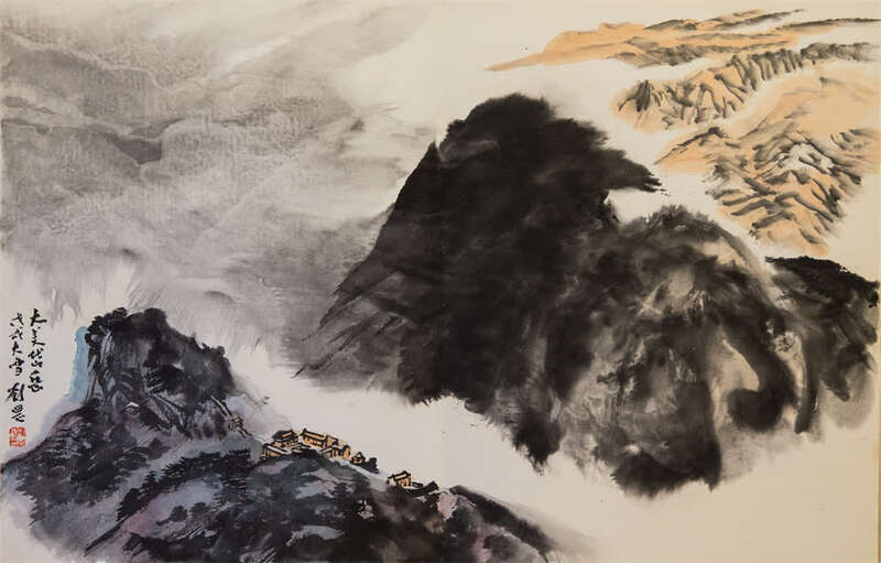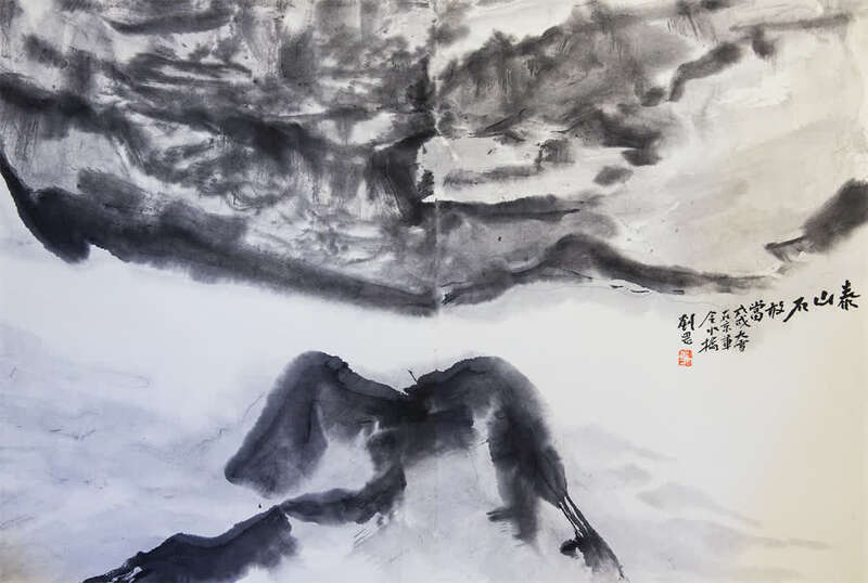 在刘罡的山水画中“望岳”,阳刚张力表现山河之美