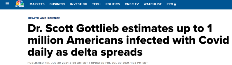 当地时间7月30日,美国食品和药物管理局前局长戈特利布在接受媒体采访时表示,随着德尔塔变异株在美国的蔓延,新冠病毒目前在美国的传播范围比官方公布的确诊病例数所反映的范围要更加广泛。