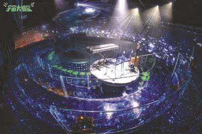 另一部音乐剧《宇宙大明星》也是个酒吧故事,但更接地气,像个真实发生的现场演唱会。服务员诺瓦一边与观众交谈,一边用歌唱出自己不得志的人生:13年出了3张专辑,也有了一些粉丝,但打零工的生活让他渐渐想放弃音乐梦。这时老板说本来请好的名歌手不来了,诺瓦替补,唱得好一点!一会来了个外星人O126,竟称他为“Super Star!Super NoVA!”这里可以看出《三体》的影子——外星人已捕捉到地球人的文明,来请诺瓦去外星走穴,可是他放不下家里的老妈……观众的座位都在地球区和星云区里,每人得到一根荧光棒,观演中可以随时舞动,最后还可以全体起立烘托宇宙音乐会的酷炫氛围,灯光、音响、特效、飞船升降,现场乐队还只是豪华配置的一部分。