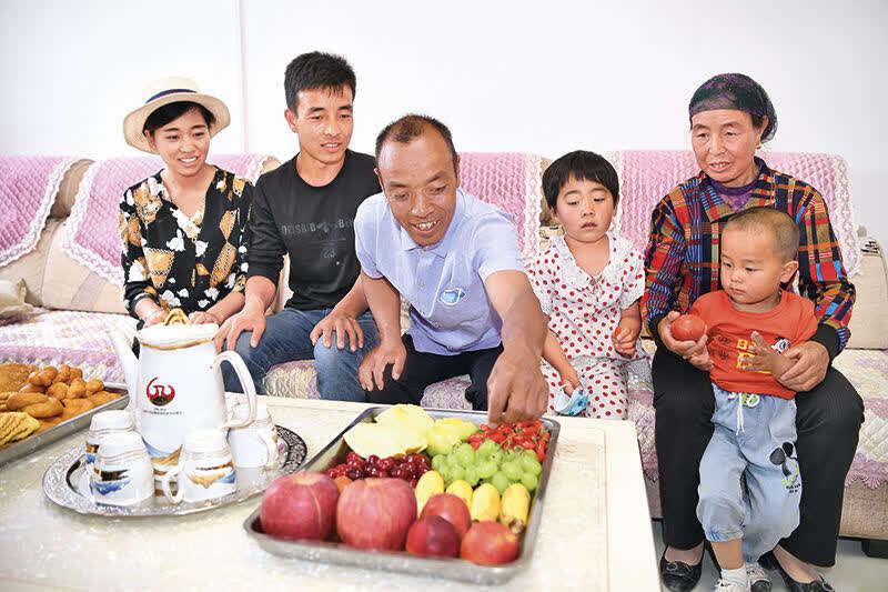 在客厅里,刘克瑞一家六口围坐总书记身边。习近平总书记询问他们还有什么困难。老刘兴奋地说:“前两年就脱贫了!什么难事共产党都帮着乡亲们解困,乡亲们打心底里感谢党的好政策,真正体会到‘共产党亲,黄河水甜’!”