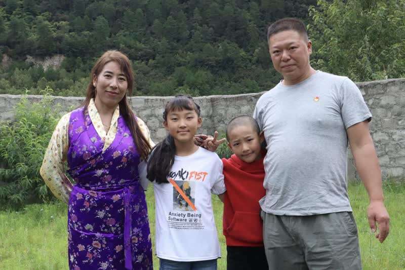 (周劲名和尼玛拉姆幸福的一家四口 央视网记者 王静远 摄)