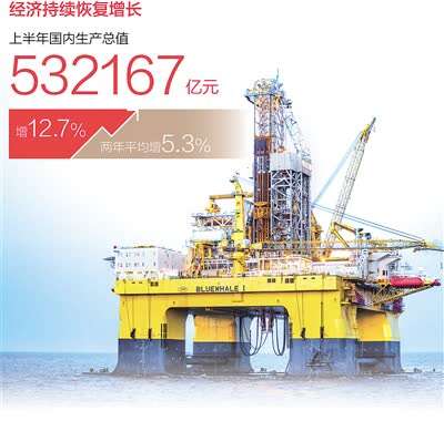 经济持续稳定增长。初步核算,上半年国内生产总值同比增长12.7%,高于6%以上的年度预期目标。其中,二季度同比增长7.9%,两年平均增长5.5%,比一季度加快0.5个百分点。