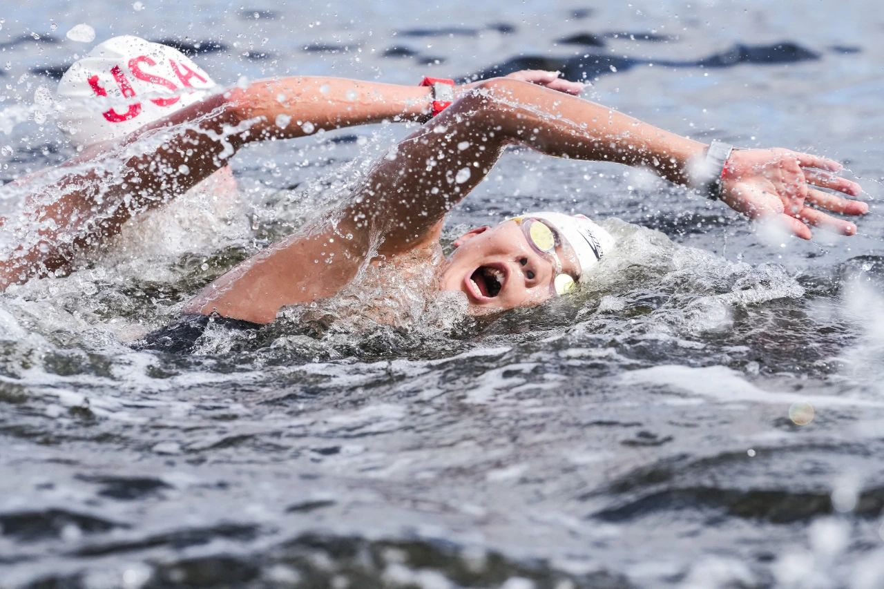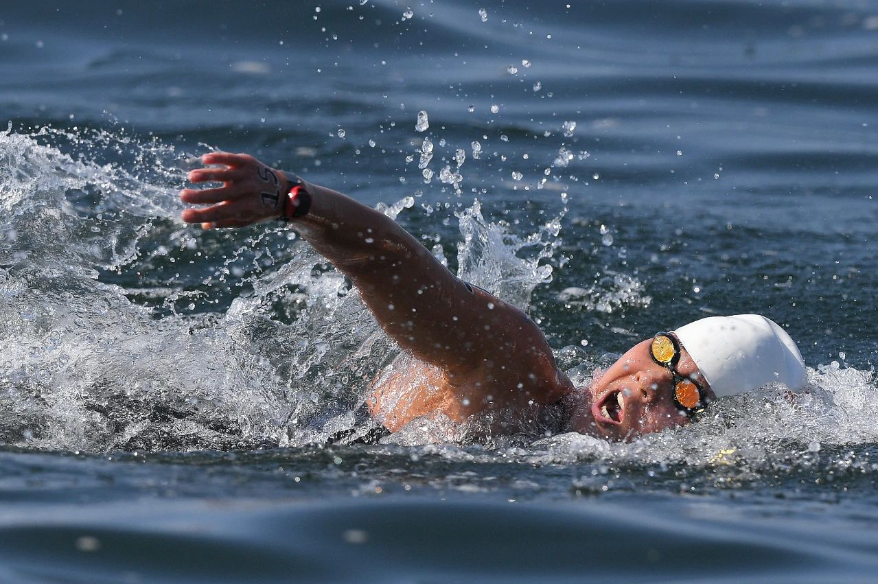 马拉松游泳是公开水域项目,在户外的江河湖海进行。运动员需凭借自身的力量与大自然展开搏斗,水流、水温、天气……每个因素都充满不确定性。此外,运动员还要直面对手水里的“暗中较劲”。