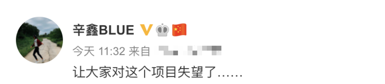 辛鑫在社交媒体发文