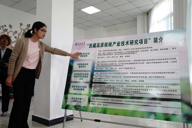 7月8日,长江大学西藏高原核桃产业研究所在山南市加查县加查镇龙巴村揭牌,近20人研究团队将为当地核桃产业提供优良品种选育、嫁接等科技服务。长江大学教师刘利平博士团队在加查工作4个多月,研究核桃资源分布、病虫害等。