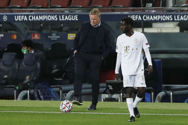 资料图:巴塞罗那队主教练科曼(左)在场边观战。新华社/路透