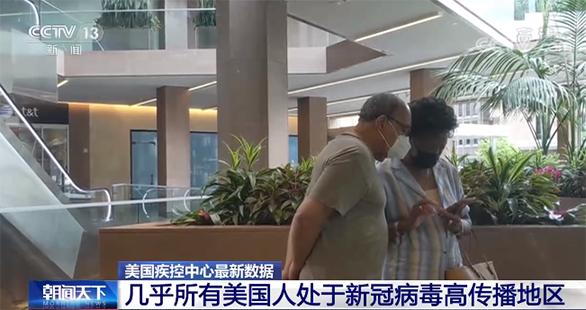 美国疾控中心:几乎所有美国人都处于新冠病毒高传播地区
