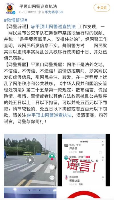河南平顶山:发短视频造谣被行拘10日