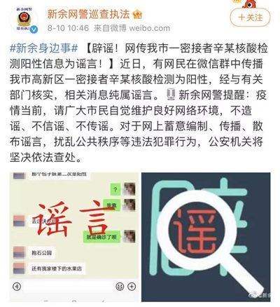 江西新余:一密接者核酸检测阳性信息为谣言