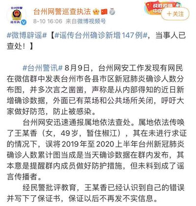 浙江台州:谣传台州确诊人数