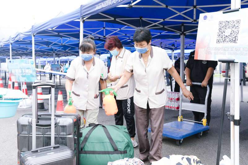 迎新校车接站时依次间隔排队,新生需要查看行程码和健康码后上车。校车抵达校门口后,再次测温,查看“两码”、15天健康检测表和承诺书,并进行健康询问和疫区旅居史确认,随身携带的行李消毒。省外学生及14日内自省外返浙江学生需要提供48小时核酸检测报告。