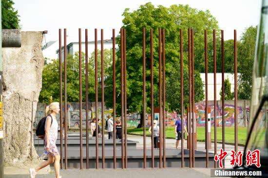 图为游人在柏林墙遗址纪念公园内参观。 (中新社记者 彭大伟 摄)