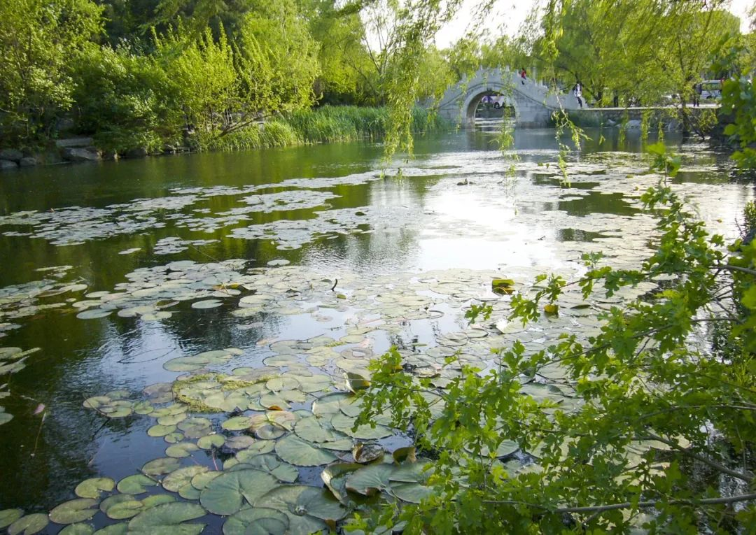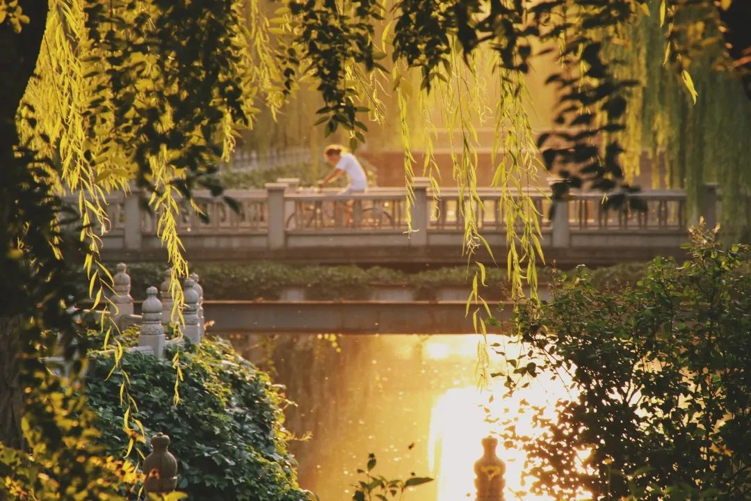 我们遍走园中,寻得石、铁、木桥二十五座。桥上人来人往,桥下静水流深。霞漫星散,日月其中;春夏秋冬,朝朝暮暮……
