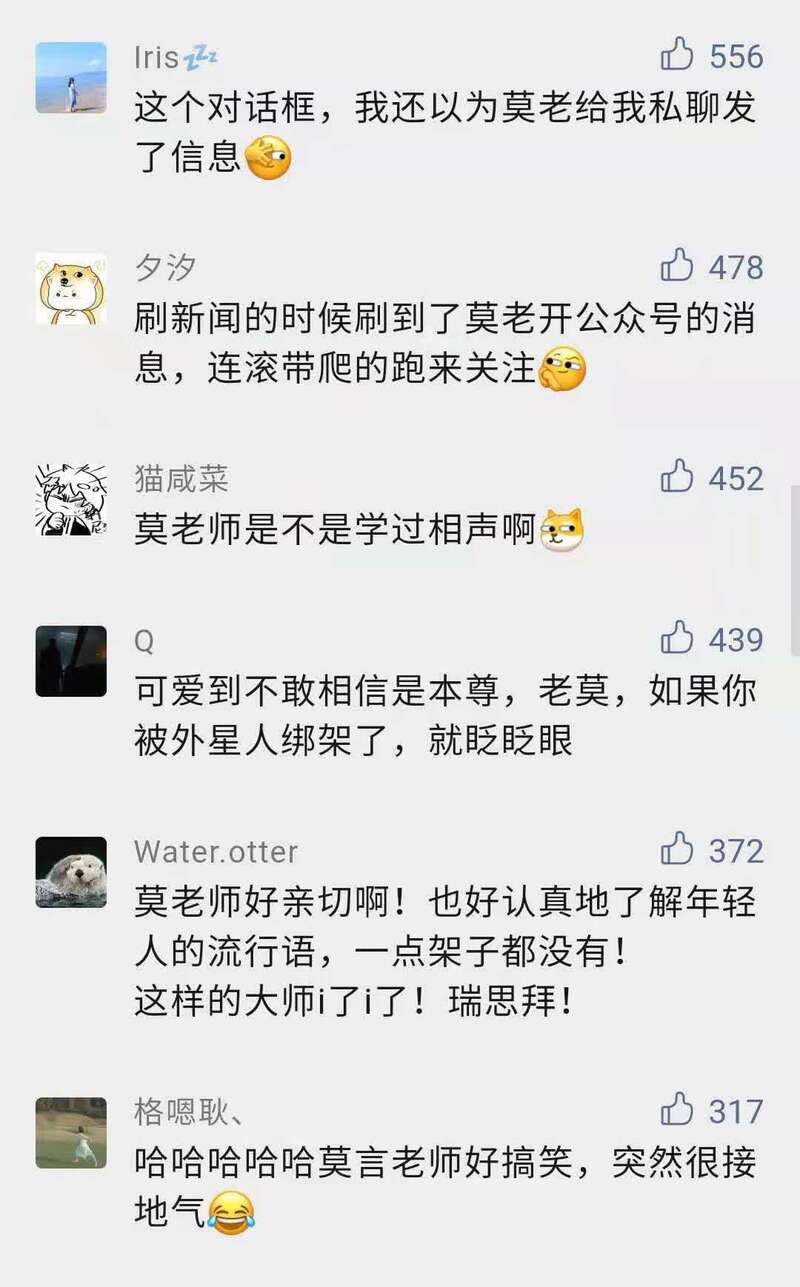 “莫言老师回复我了,他心里有我!”“完全没代沟”“啥也别说了,我要去看书啦!书里面藏着有趣的灵魂”“老莫才真瑞思拜!”