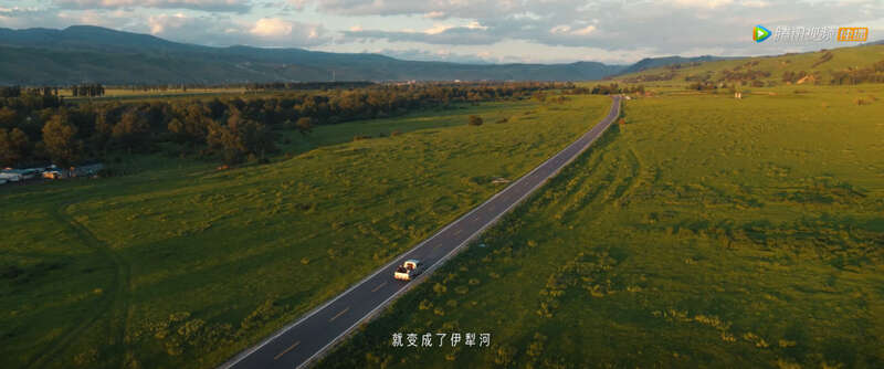 主景地那拉提旅游风景区很美,然而镜头只给大全景,不给夏季的草场特写。即便如此,人物特写的边角中仍能看见植物细腻丰富的纹理。一行行常绿针叶树潇洒的排布方式,最高明的园艺设计师也只能粗鄙地模仿。